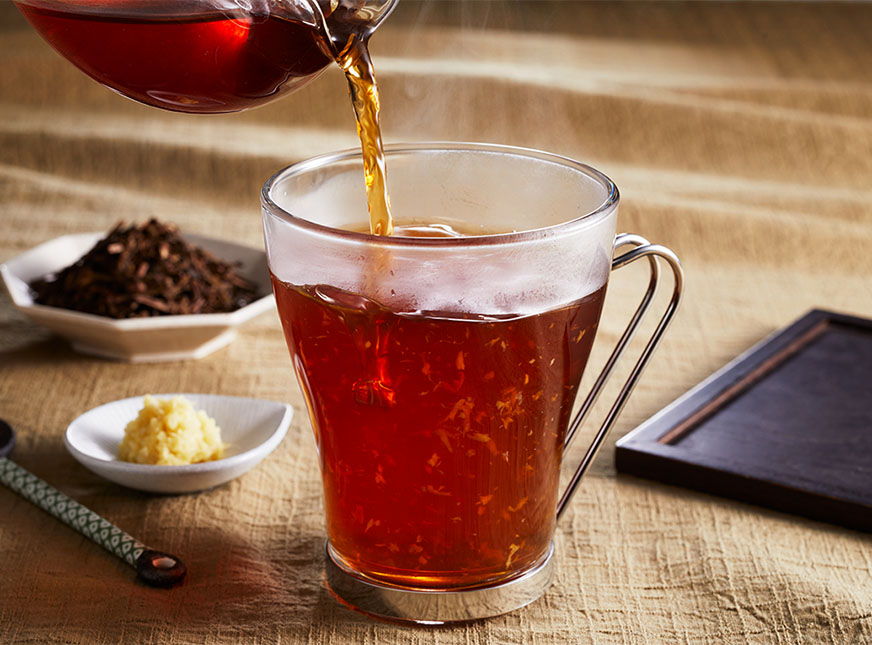 香ばしいほうじ茶にすりおろしショウガを加えた身体温まる一杯