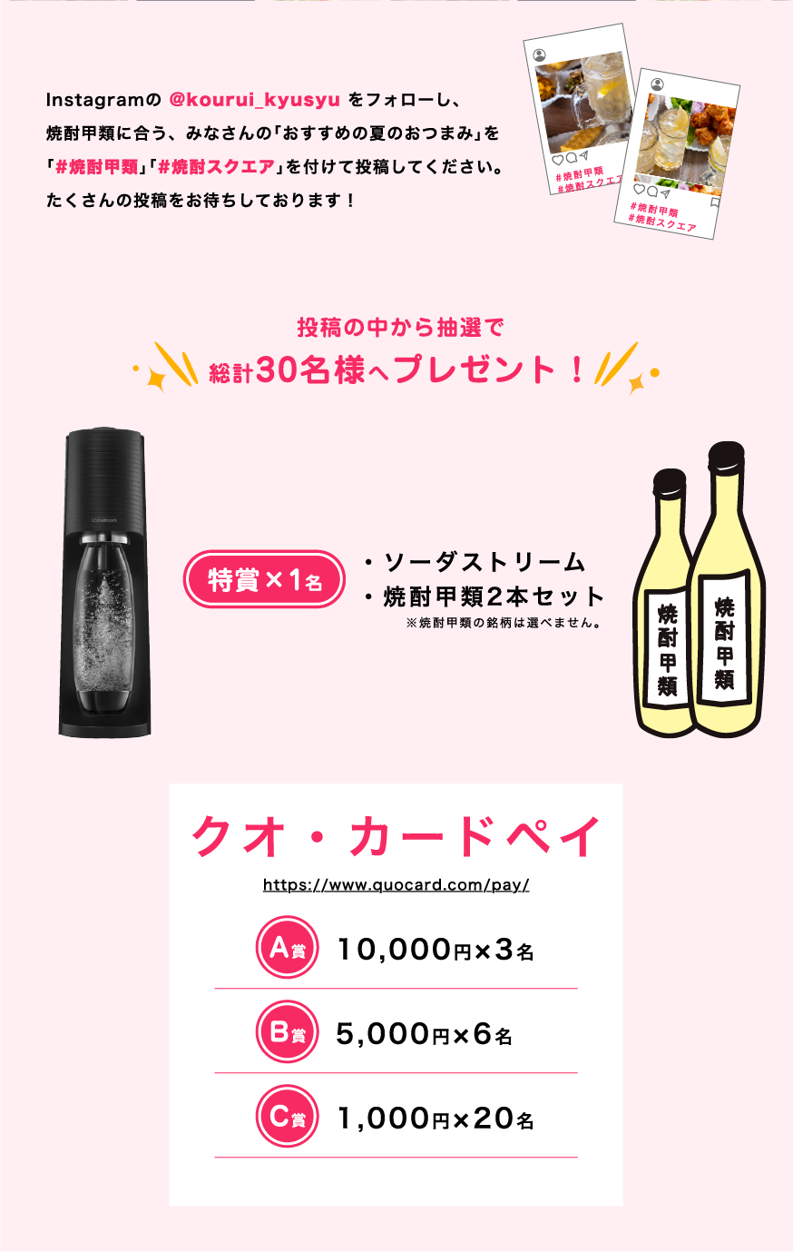特賞:ソーダストリーム、焼酎甲類2本セット×1名
