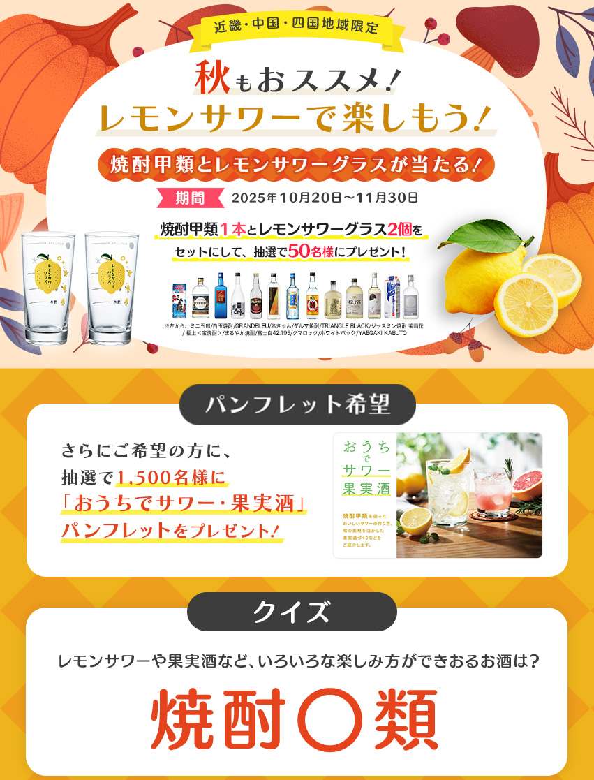 【近畿・中国・四国エリア限定】焼酎甲類とレモンサワーグラスが当たる!!